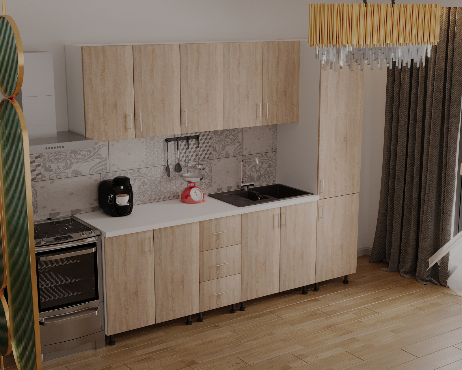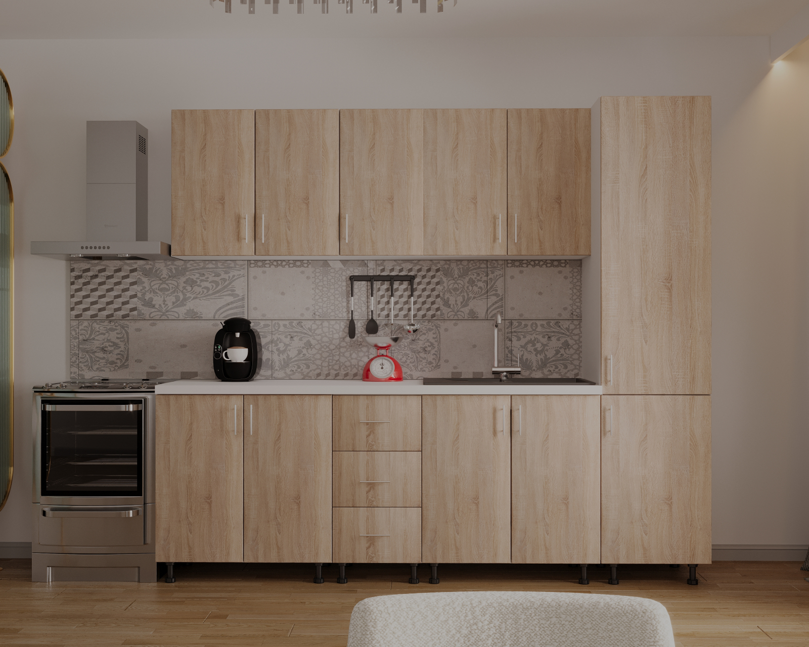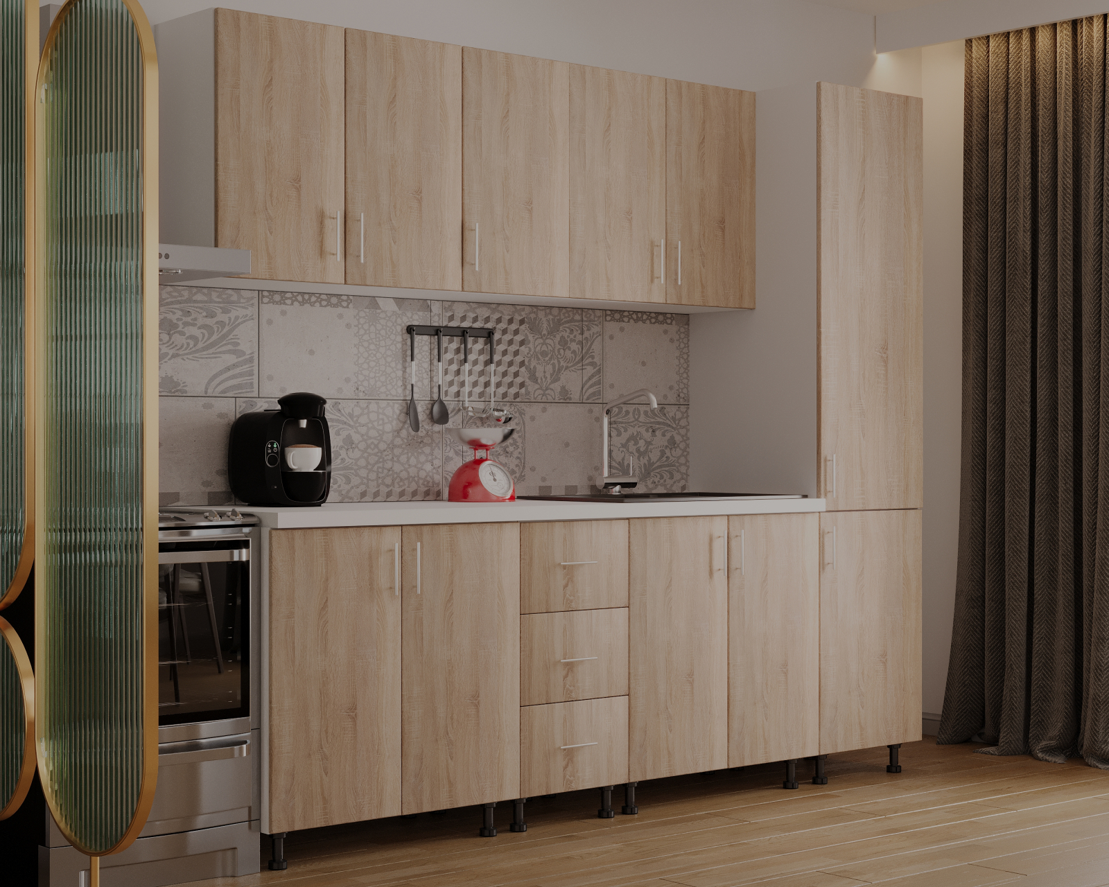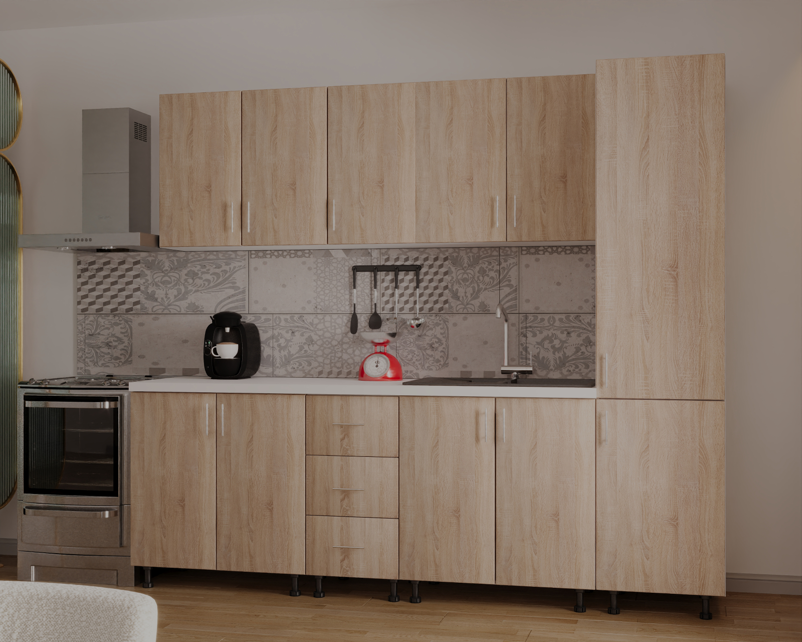 Mobysa Bucatarie Alia cu soldat, 250 cm L, Sonoma, Pal 18 mm