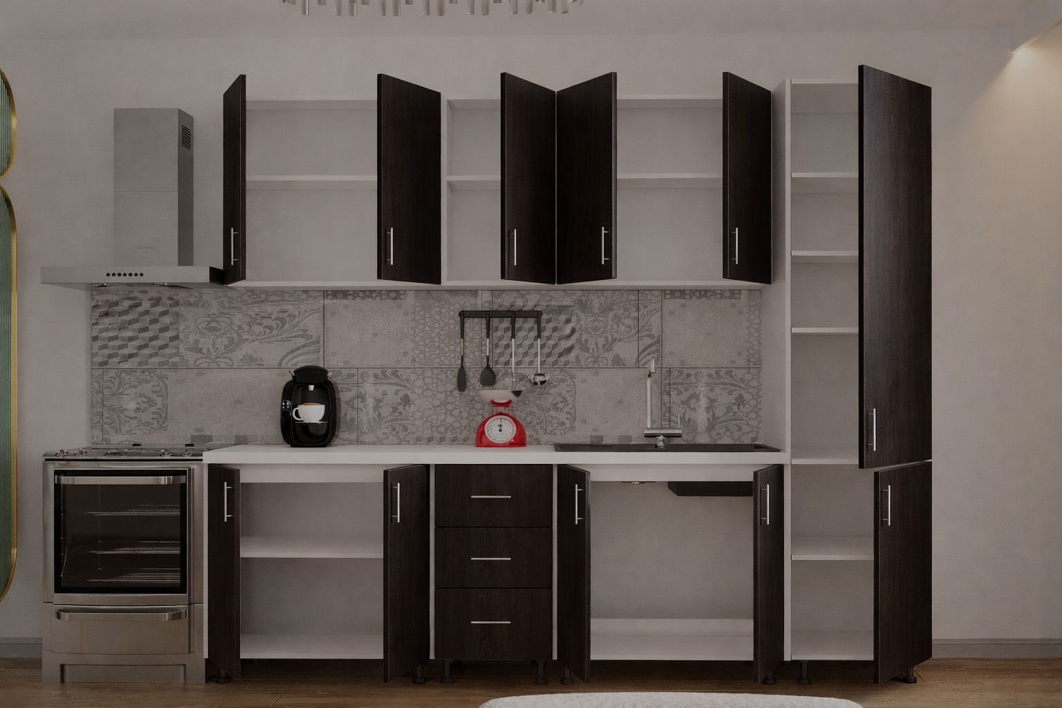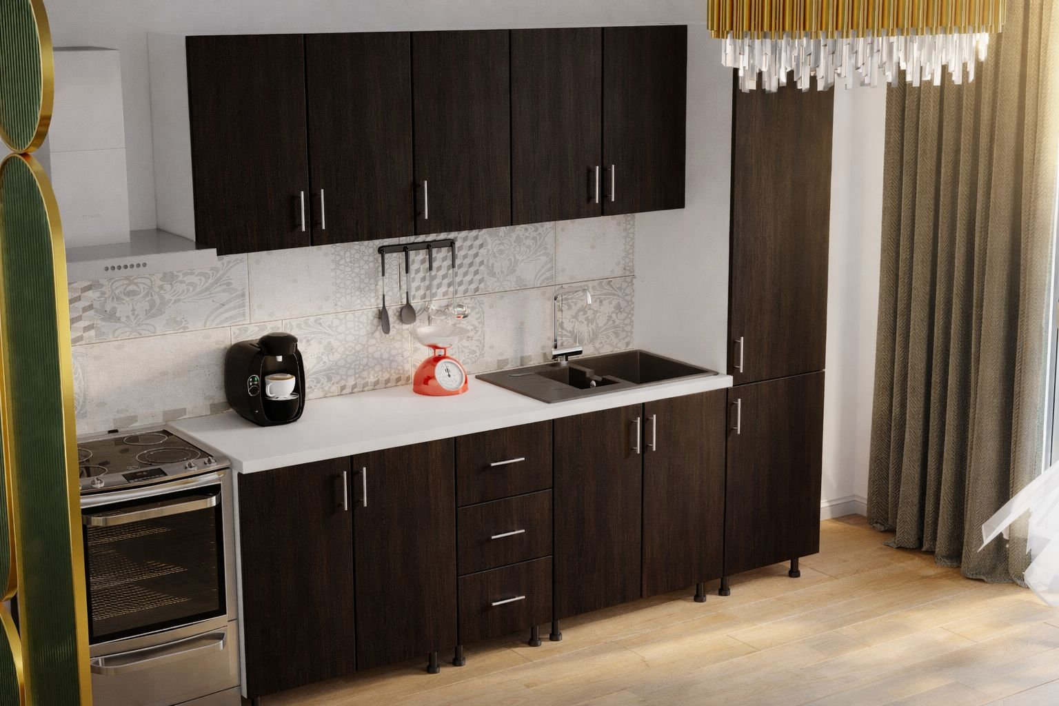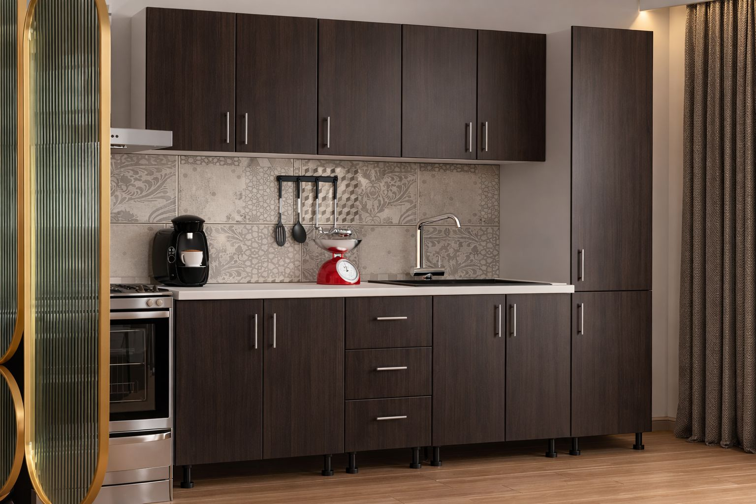 Mobysa Bucatarie Alia cu soldat, 250 cm L, Wenge, Pal 18 mm