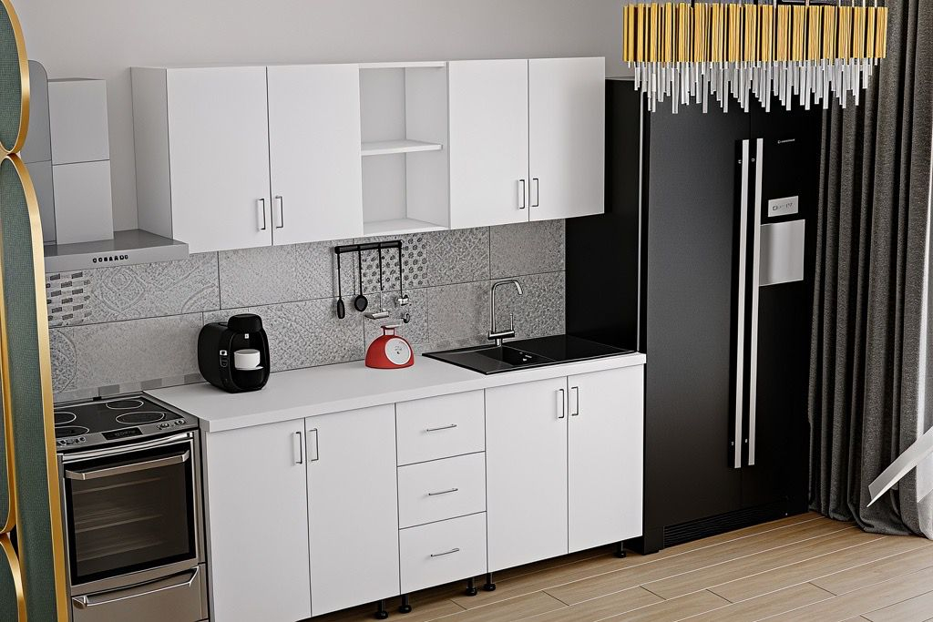 Mobysa Bucatarie Mona, 200 cm L, Alb, Pal 18 mm