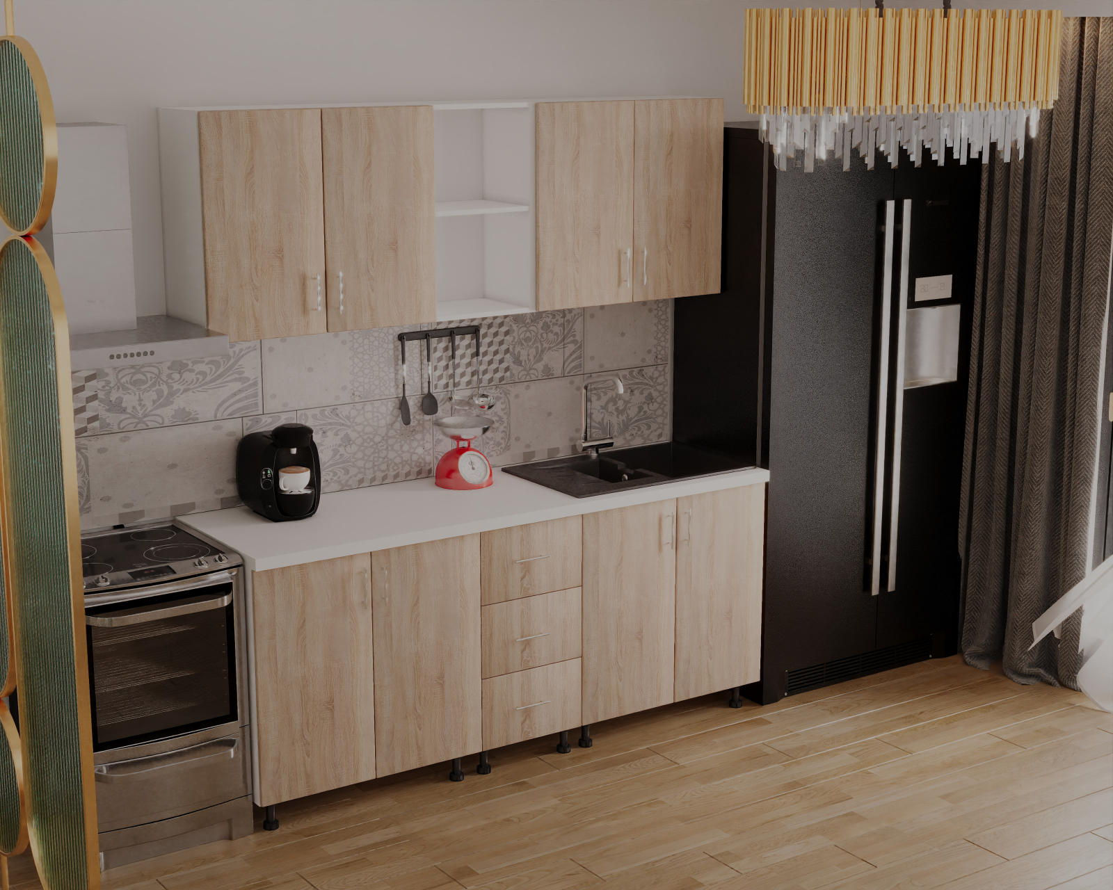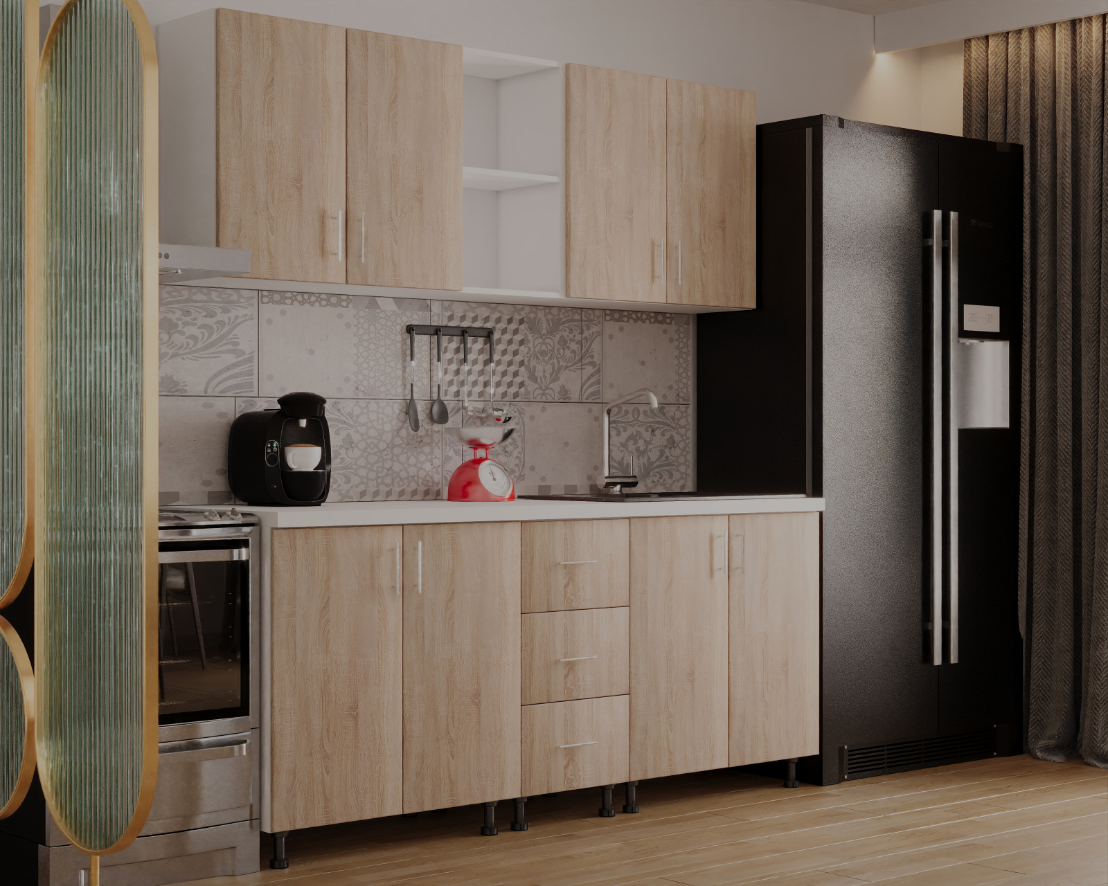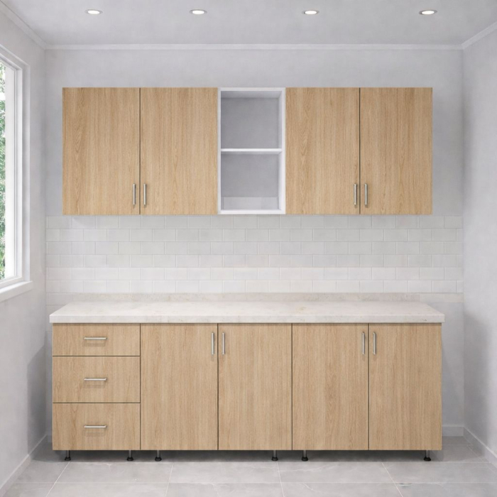 Bucataria de 200 cm lungime se poate incadra perfect in spatiul de care aveti nevoie.