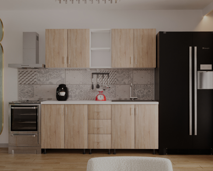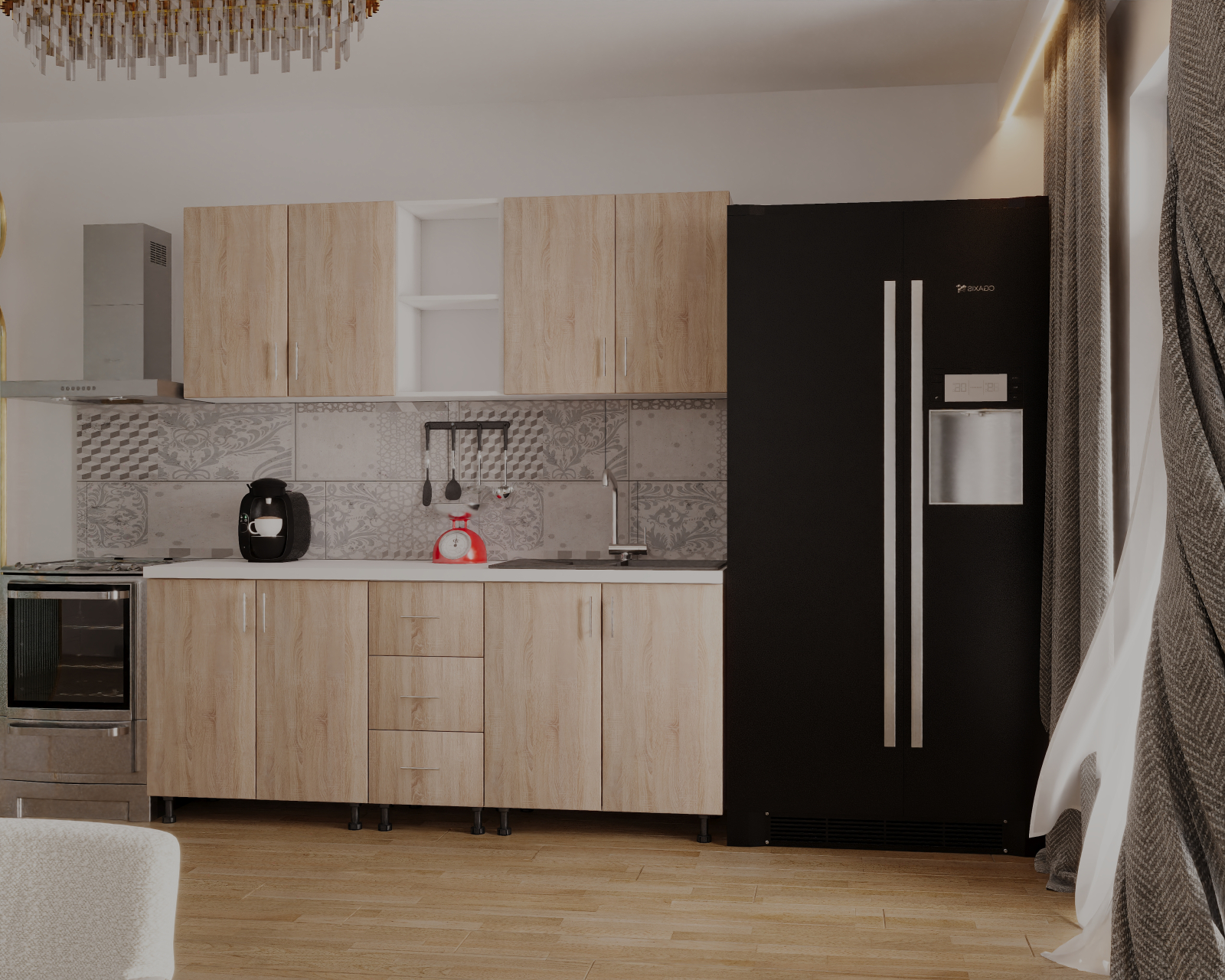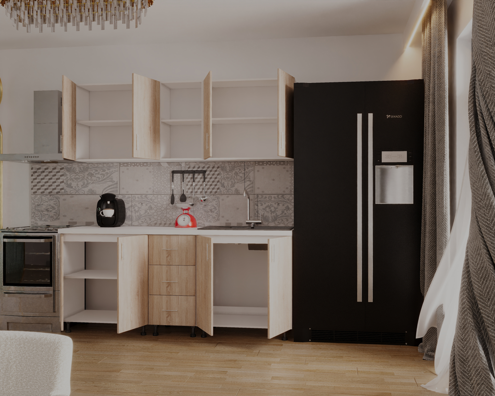 Descopera aceasta bucatarie cu spatiul bine organizat si finisajele de calitate, ce iti ofera un mediu perfect pentru a-ti pune in valoare abilitatile culinare.O oportunitate unica pentru cei care cauta echilibrul perfect intre estetica si utilitate in inima casei sale.