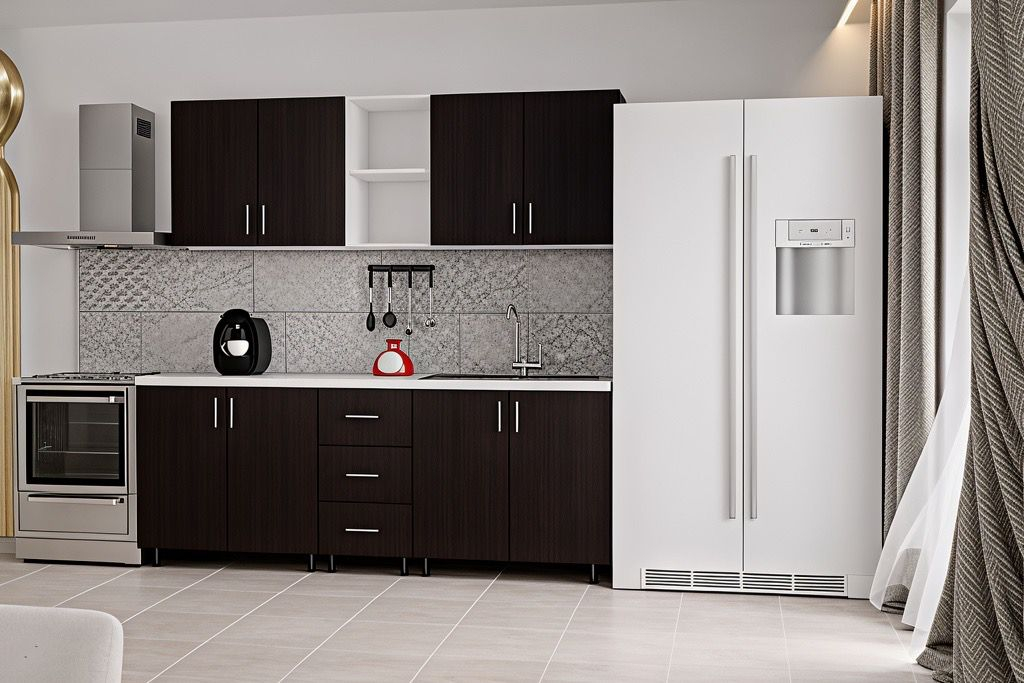 Bucataria de 200 cm lungime se poate incadra perfect in spatiul de care aveti nevoie.