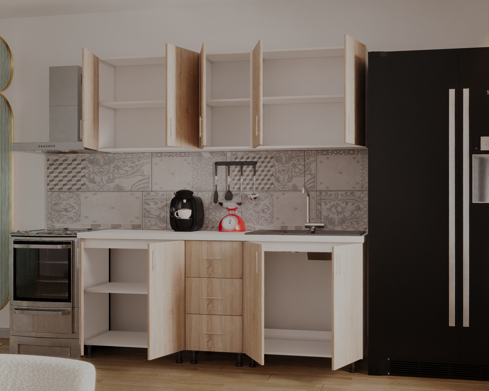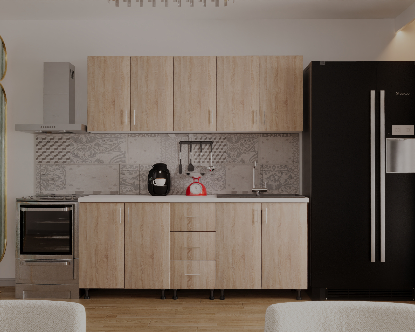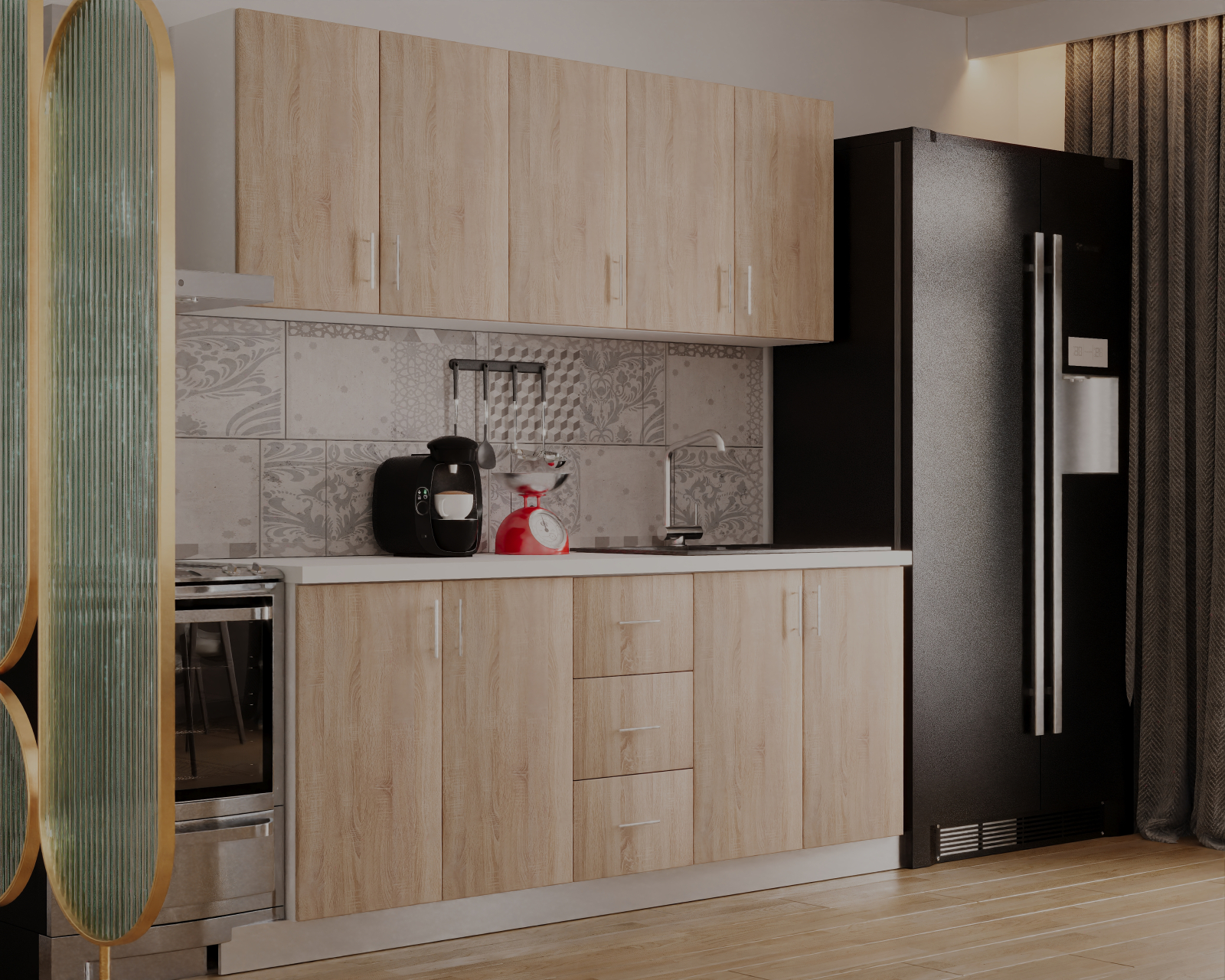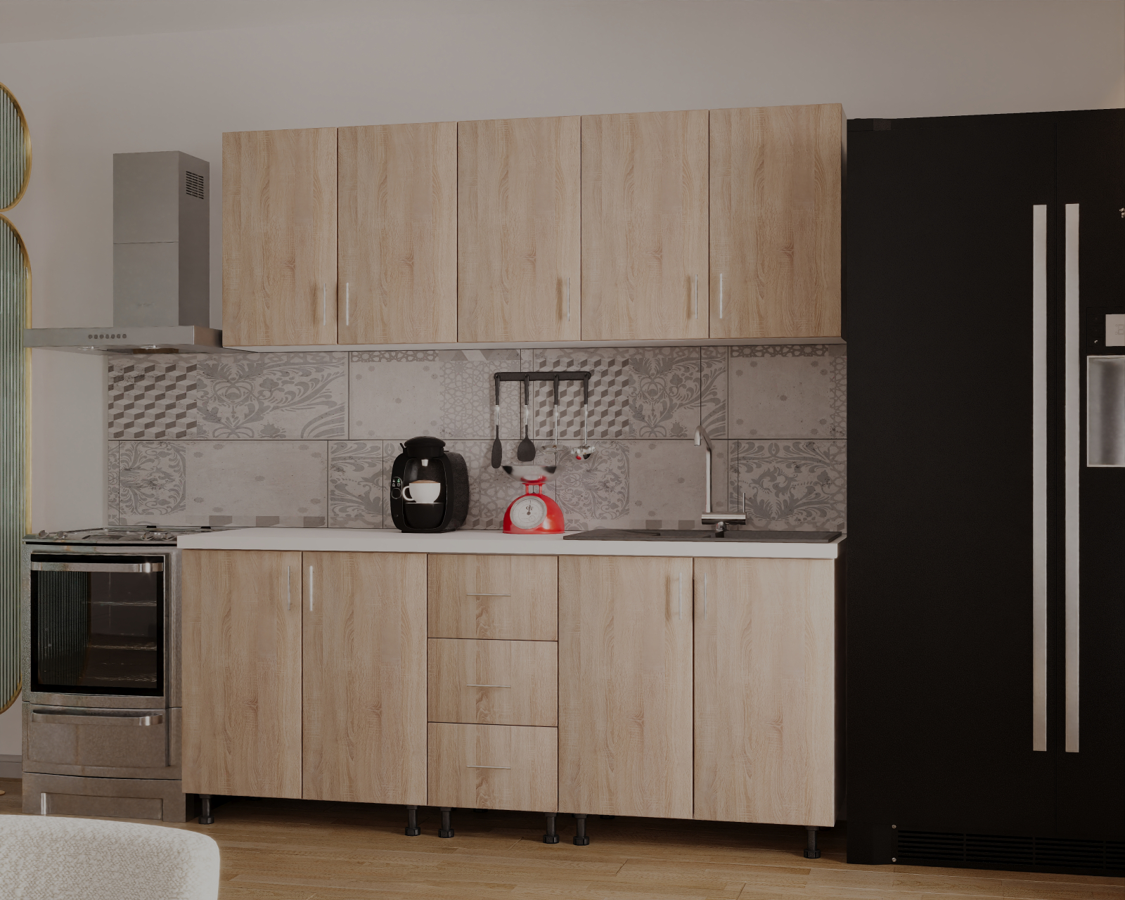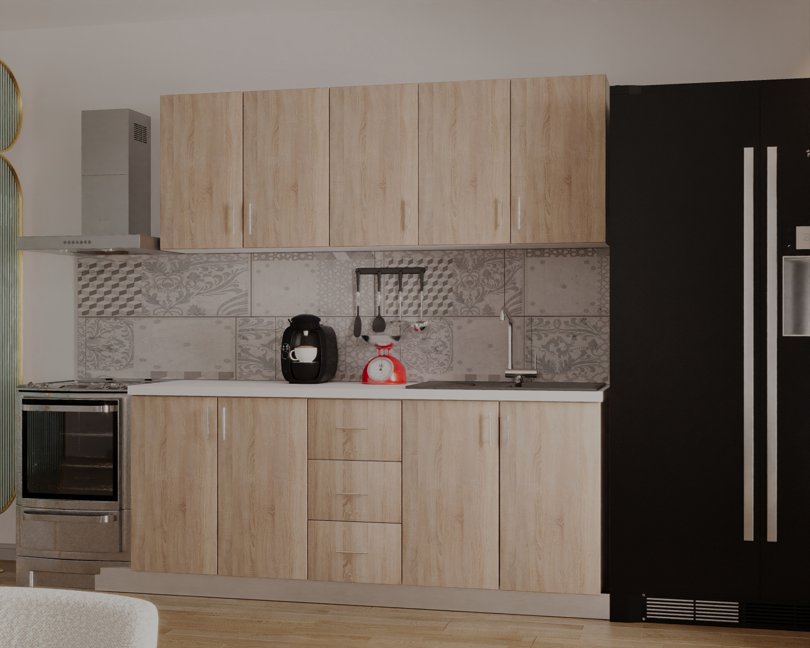Descopera aceasta bucatarie cu spatiul bine organizat si finisajele de calitate, ce iti ofera un mediu perfect pentru a-ti pune in valoare abilitatile culinare.O oportunitate unica pentru cei care cauta echilibrul perfect intre estetica si utilitate in inima casei sale.