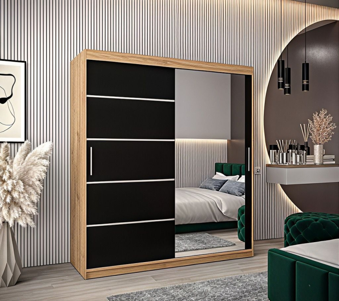 Mobysa Dressing Sebastian, 180x60x200cm, cu oglinda, Sonoma/Wenge , Pal 18 mm