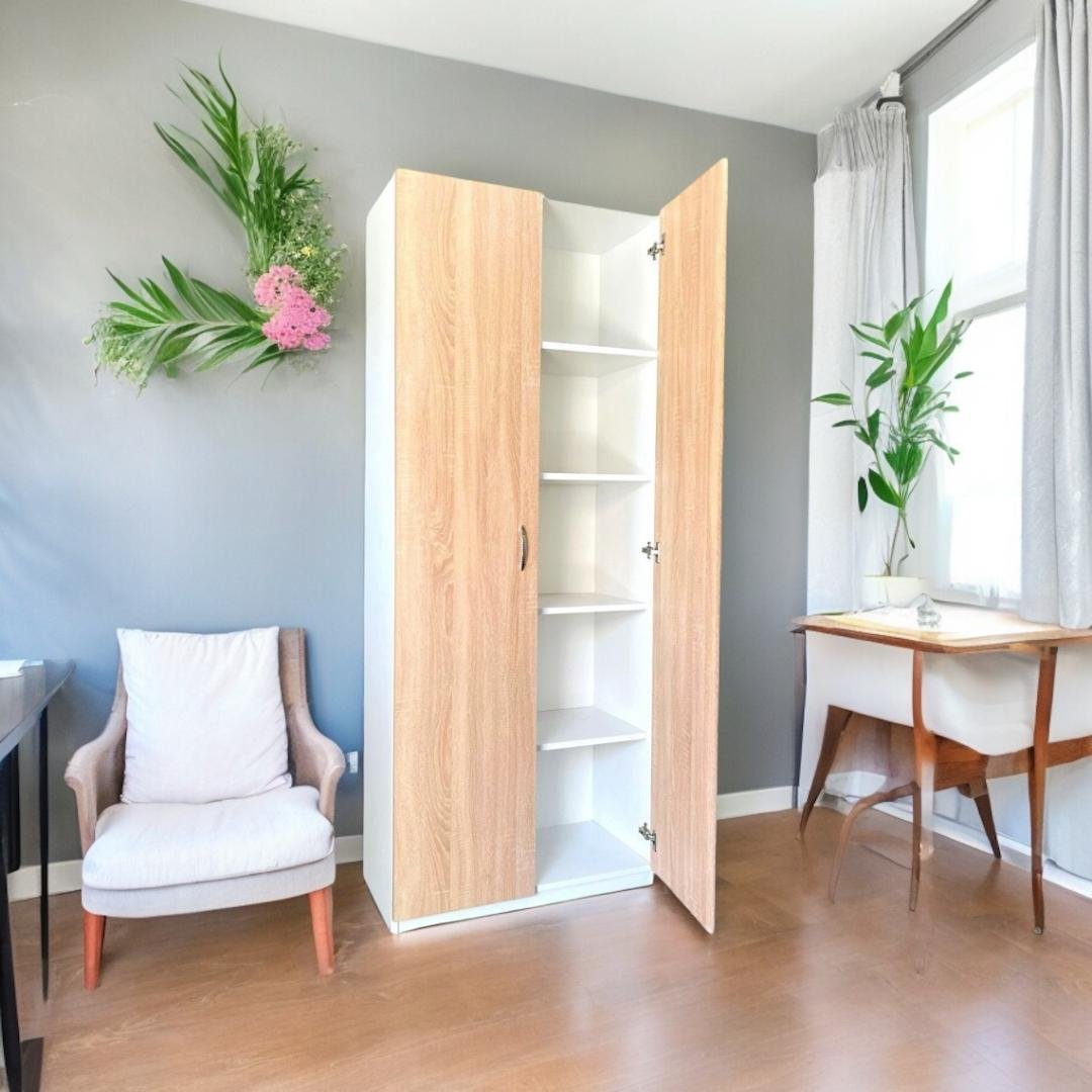 Dulapul cu 2 usi dispune de rafturi cu 5 nivele  care va va oferi suficient spatiu pentru a va mentine casa ordonata.
