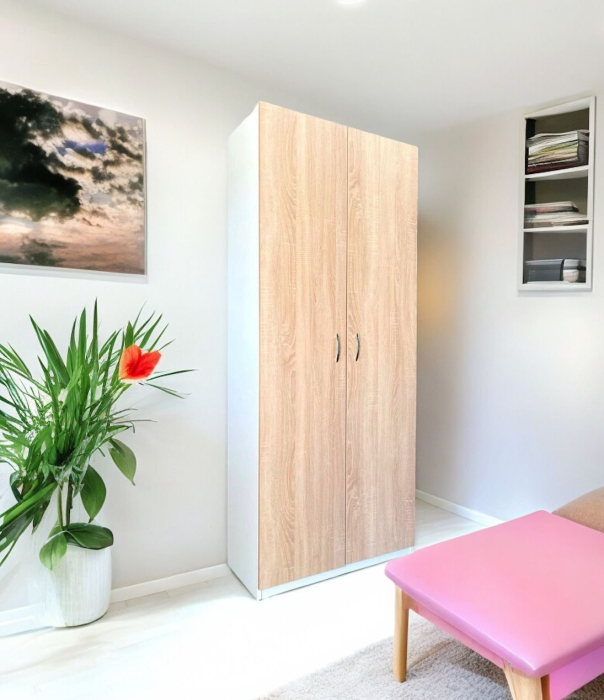 Mobysa Dulap 2 usi, 197x80x40 cm, 4 polite, Alb+Stejar Sonoma, Pal 18 mm