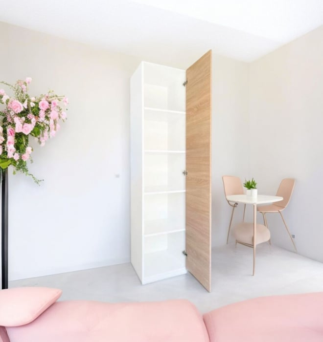 Dulapul cu 1 usa dispune de rafturi cu 5 nivele  care va va oferi suficient spatiu pentru a va mentine casa ordonata.