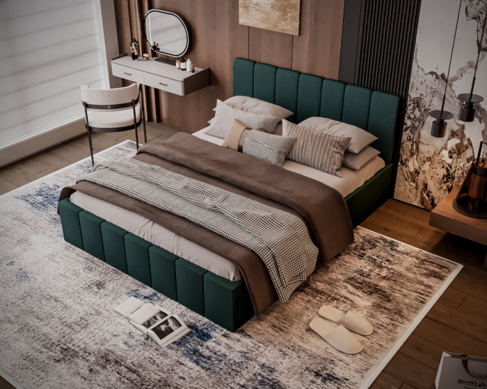 Mobysa Pat tapitat Alex cu saltea, 180x200 cm, Verde