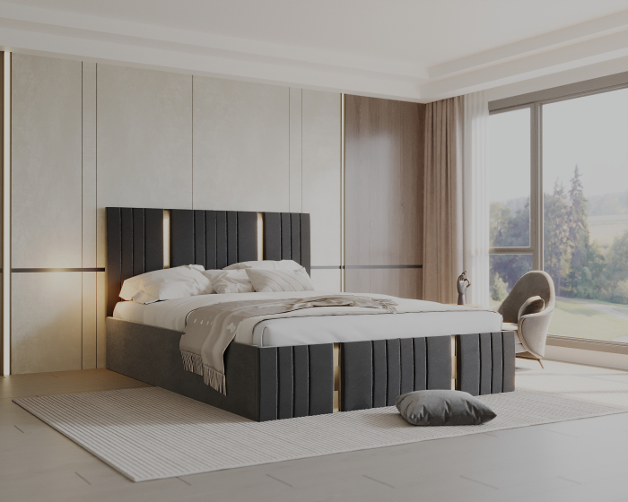 Mobysa Pat tapitat Sebastian cu saltea , 160x200 cm, Gri inchis