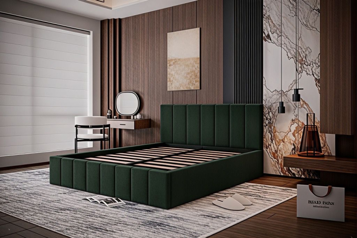 - Confort sporit – Tapiteria moale ofera un plus de confort, mai ales la tablia patului, ideal pentru sprijinirea spatelui.