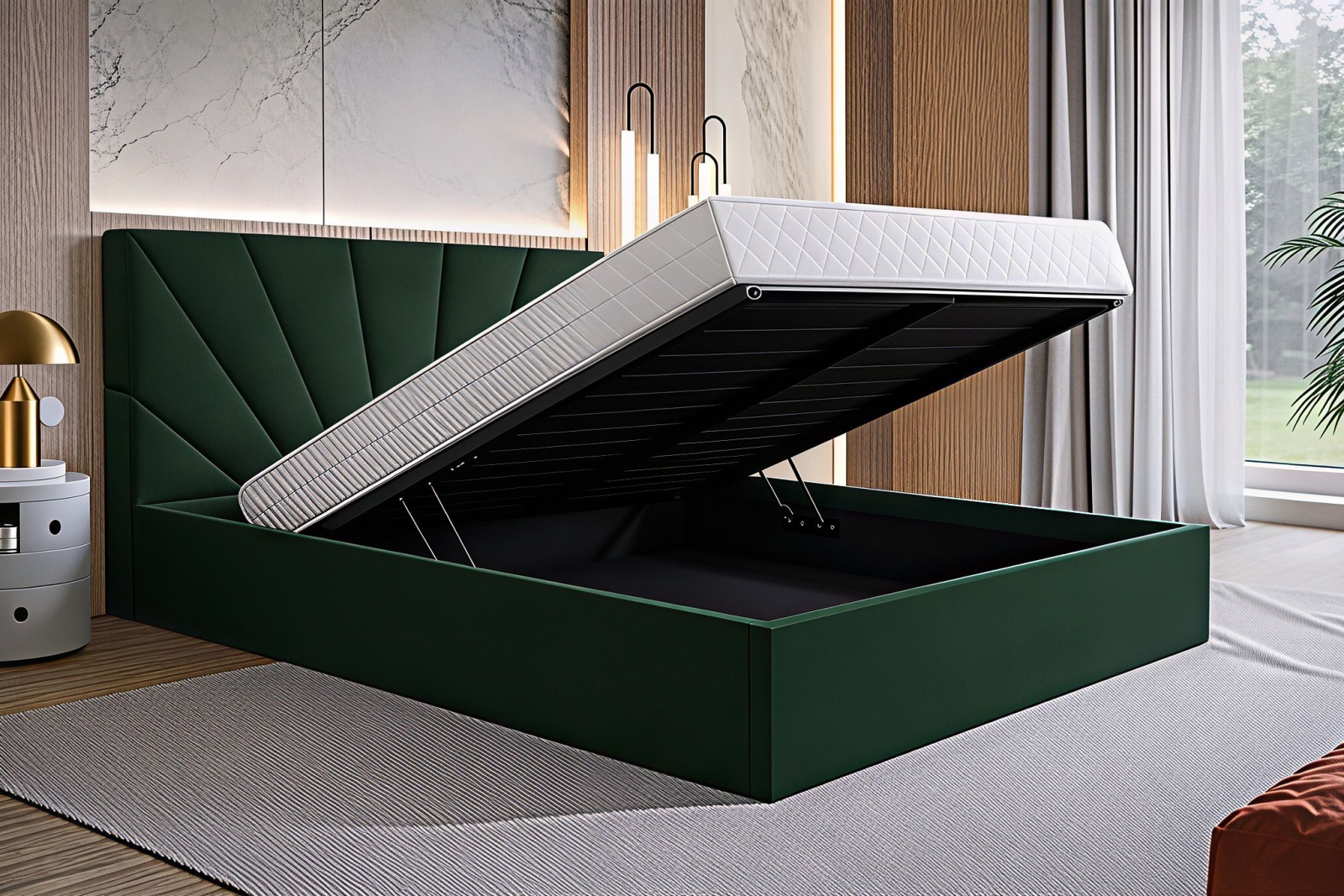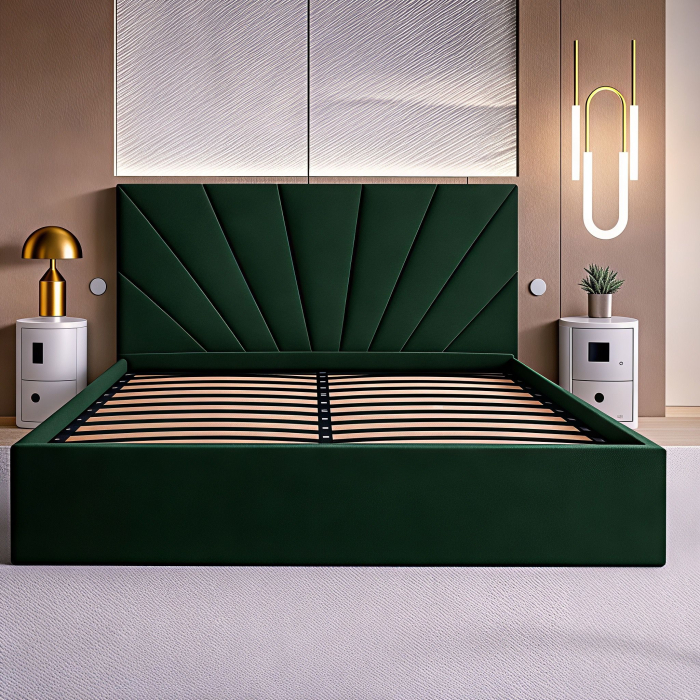 - Confort sporit – Tapiteria moale ofera un plus de confort, mai ales la tablia patului, ideal pentru sprijinirea spatelui.