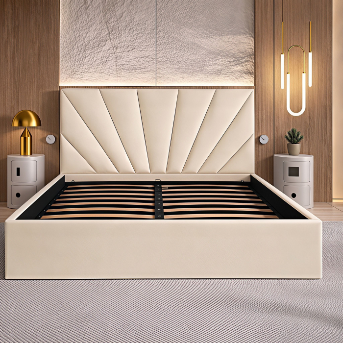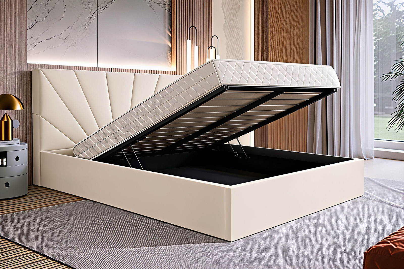 - Confort sporit – Tapiteria moale ofera un plus de confort, mai ales la tablia patului, ideal pentru sprijinirea spatelui.