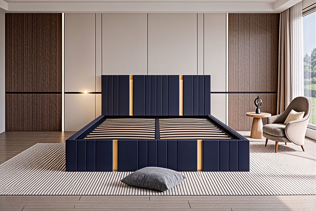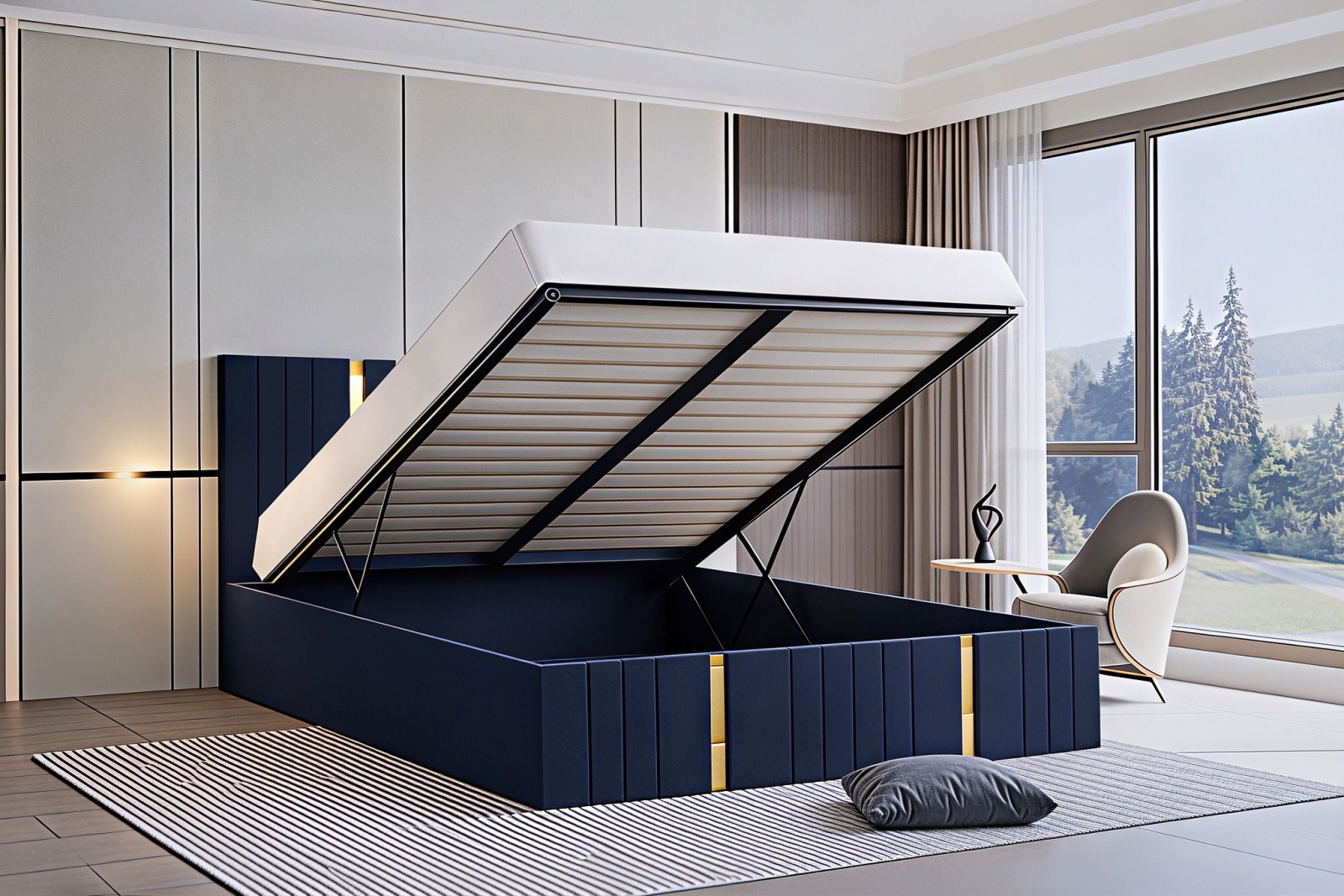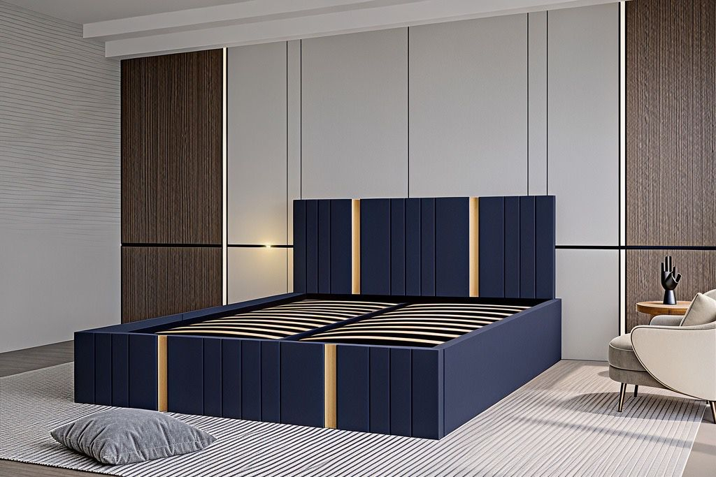 Mobysa Pat Sebastian, 140x200 cm, Albastru, cu Somiera Rabatabila