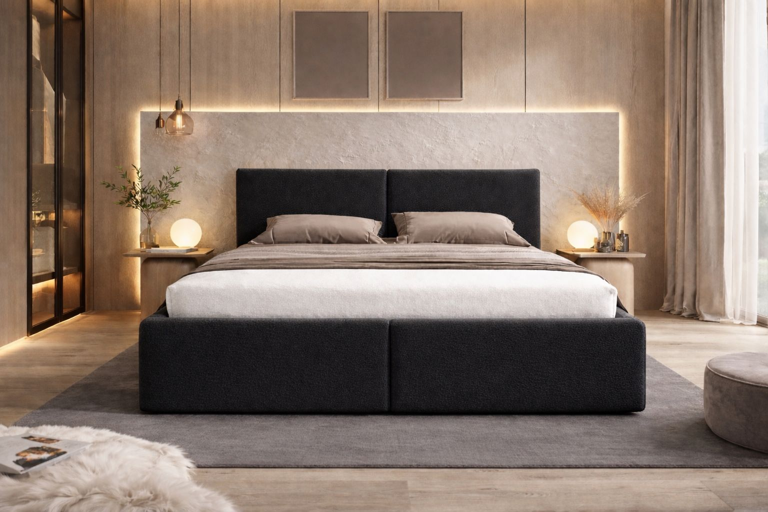 - Confort sporit – Tapiteria moale ofera un plus de confort, mai ales la tablia patului, ideal pentru sprijinirea spatelui.