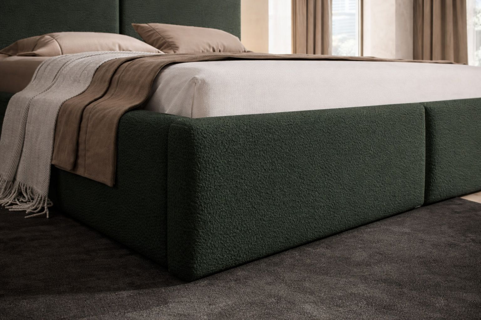 - Confort sporit – Tapiteria moale ofera un plus de confort, mai ales la tablia patului, ideal pentru sprijinirea spatelui.