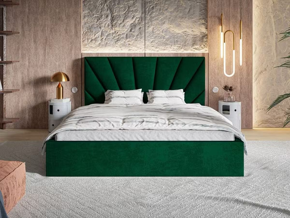 Mobysa Pat tapitat Cami cu saltea , 180x200 cm, Verde