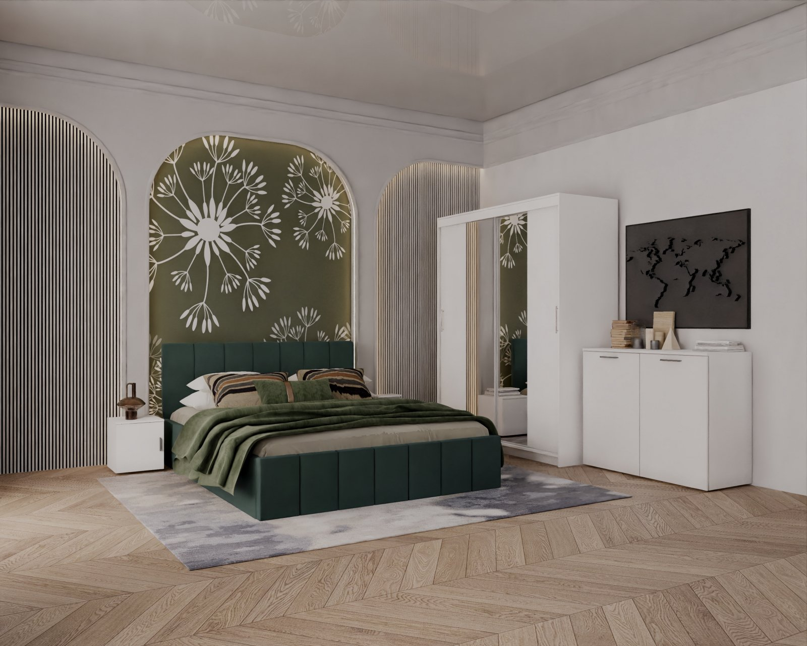 Mobysa Set Dormitor Alex cu oglinda, 160x200cm, Verde + Alb, Pal 18 mm