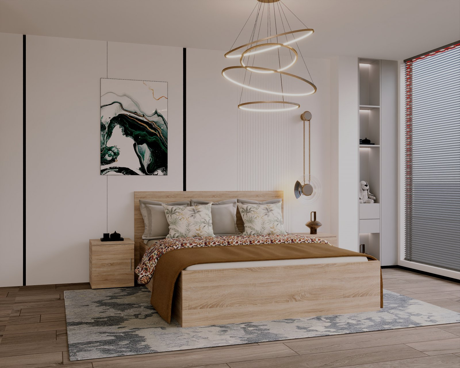 Dormitor elegant și funcțional, perfect pentru a crea o oază de relaxare în casa ta.