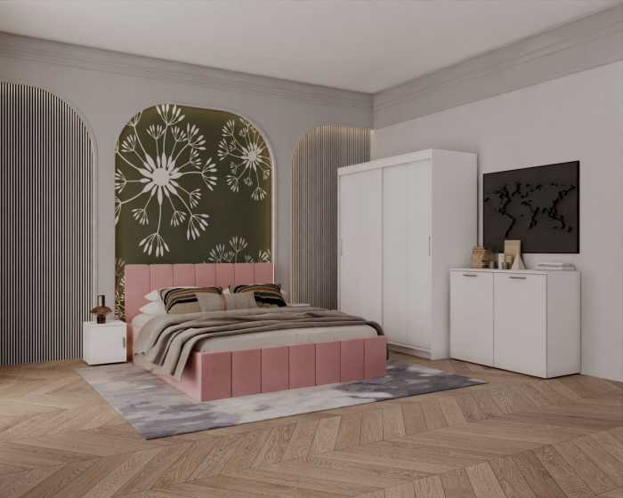 Mobysa Set Dormitor Alex, 160x200cm, Roz + Alb, Pal 18 mm