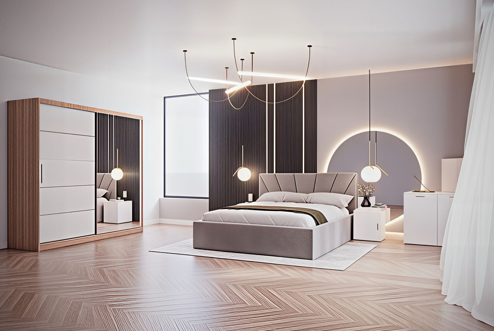 Dormitor elegant și funcțional, perfect pentru a crea o oază de relaxare în casa ta.