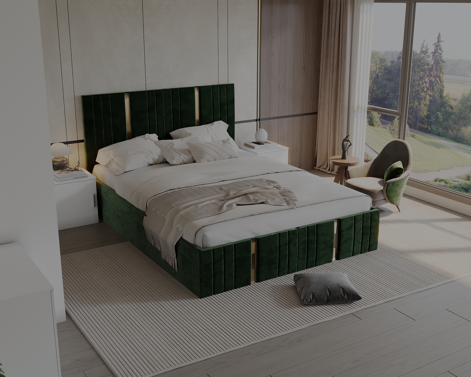 Mobysa Set Dormitor Sebastian auriu cu oglinda, Pat 160x200cm, Verde + Alb, Pal 18 mm