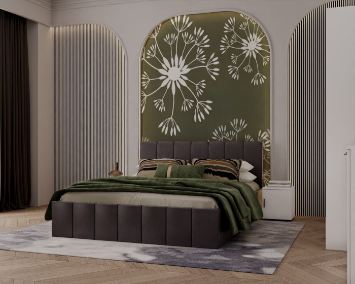 Mobysa Pat tapitat Alex Gri inchis 160x200 cm + Set noptiere